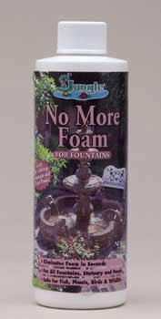 No More Foam for Fountains," Eliminates Foam in Seconds For All Fountains, Statuary and Pond Safe for Fish, Plants, Birds and Wildlife","Gets rid of unsightly foam fast, leaving water clean and clear.","Shake well before using. If foaming persists five minutes after initial treatment, repeat dosage until foam is gone. Persistent foaming indicates a heavy concentration of undissolved organics. Partial water changes can improve water quality which will hel",8 oz. (236 mL),1 tsp./10 U.S. gal. (5 mL/40 L),up to 480 U.S. gal. (1800 L)